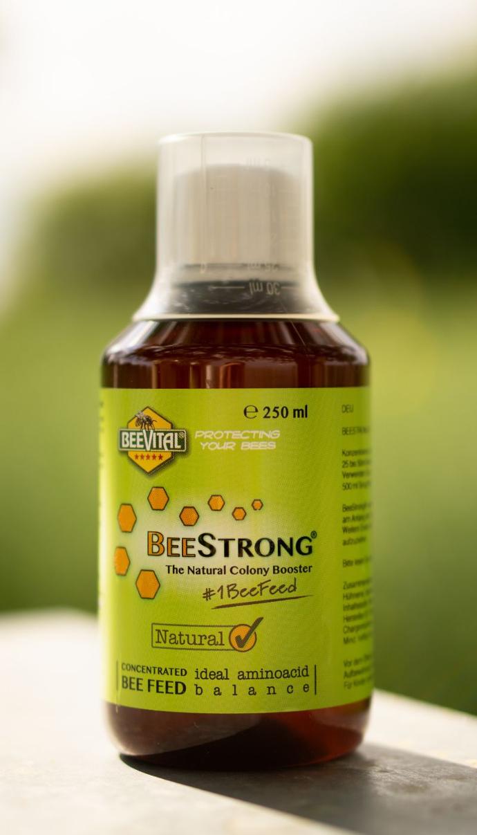 - We recommend feeding BeeStrong® at least twice a year. This results in a requirement of approx. 100 ml BeeStrong per colony / year.