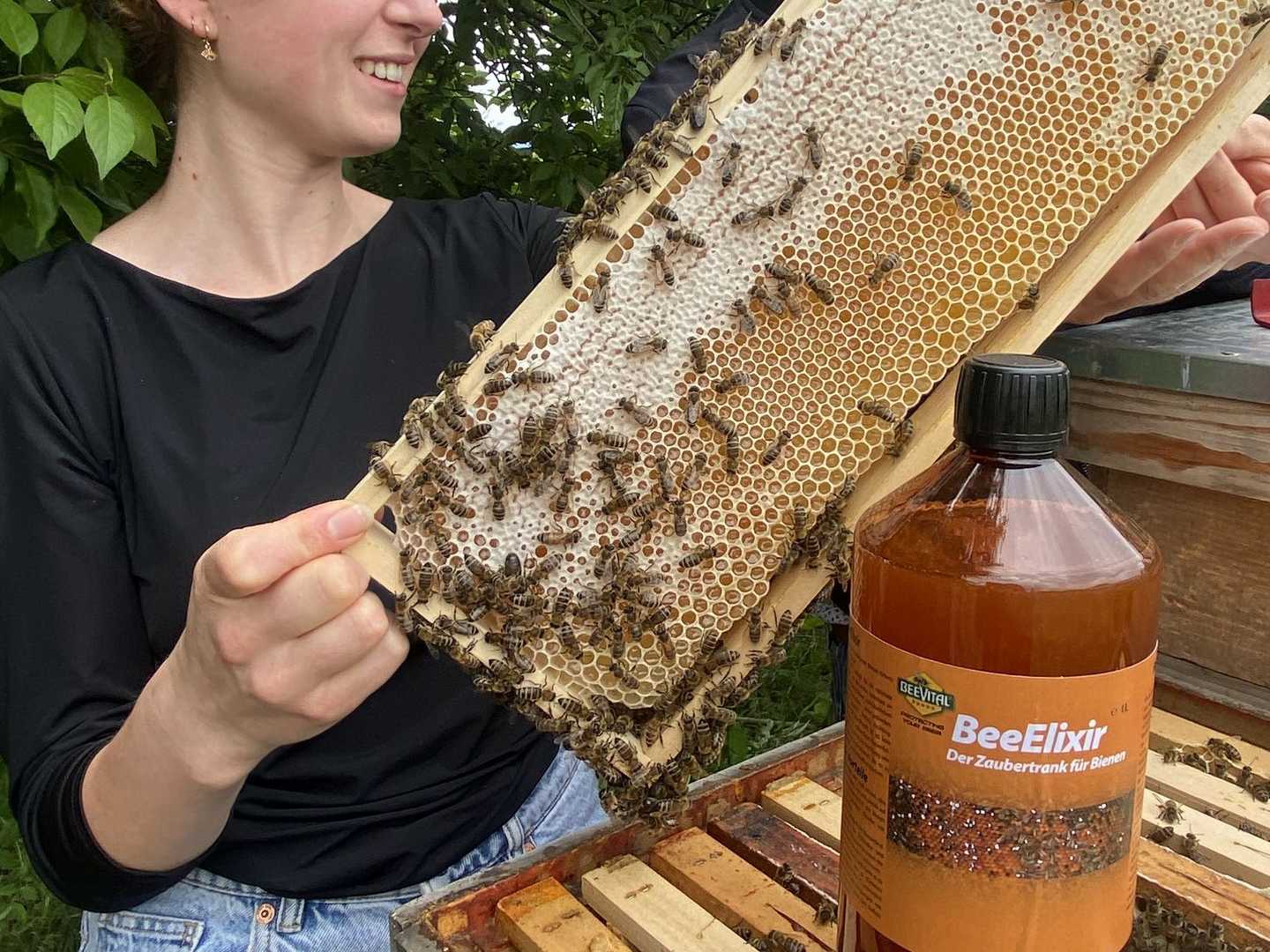 For best use mix 25-50 ml (1-2 caps) in ½-1 litre of sugar syrup and place the mixture in a regular feeder. We recommend feeding BeeStrong one time in spring and one time after the last honey harvest to get best results. You can also repeat the feedings within a timespan of one to two weeks if you have a weaker colony that needs extra support or if you want to boost your breeding colonies for best results in queen breeding.